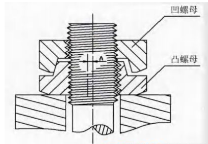 HARDLOCK是雙螺母(見圖3),內(nèi)螺母外側設有偏心的突起;外螺母為普通螺母結構,其內(nèi)側設有同心的凹槽;外螺母備緊時內(nèi)螺母的外側凸起與螺栓不同心,內(nèi)螺母的偏心突起與螺栓受到外螺母的擰緊擠壓產(chǎn)生徑向力,相當于在螺紋間隙中增加了鍥子,螺紋全方位鎖緊。